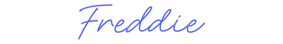 Text: Freddie Text Align: leftFont: BayshoreColour: Ice BlueSize: 60cm wide / 60cm X 18.01cm / 23.62in X 7.09inBackboard: Cut to ShapeBackboard Colour: Clear Acrylic BackboardJacket: White JacketMounting: HangingAdd a Heart or Star (Optional): None (Default)Neon Tube Thickness: Bold ...