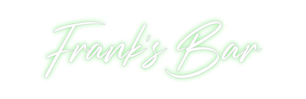 Text: Frank's Bar Text Align: left Font: StrudeColour: Light GreenSize: 60cm wide / 60cm X 15.85cm / 23.62in X 6.24inBackboard: Cut to Letter (free upgrade)Jacket: White JacketMounting: Wall mounting screwsAdd a Heart or Star (Optional): None (Default)Neon Tube Thickness: Classic Tub...