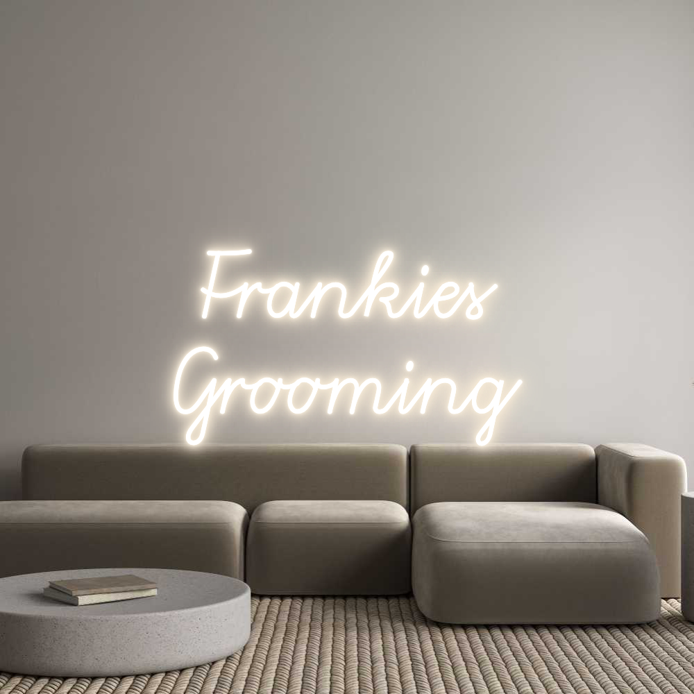 Text: Frankies Grooming Text Align: CenterFont: GruenewaldColor: Warm WhiteSize: 80cm wide / 80cm X 48.44cm / 31.5in X 19.07inMaterial: IndoorBackboard: Cut to ShapeBackboard Color: Clear Acrylic BackboardJacket: Coloured JacketMounting: Wall mounting screwsAdd a Heart or Star (Optional)...
