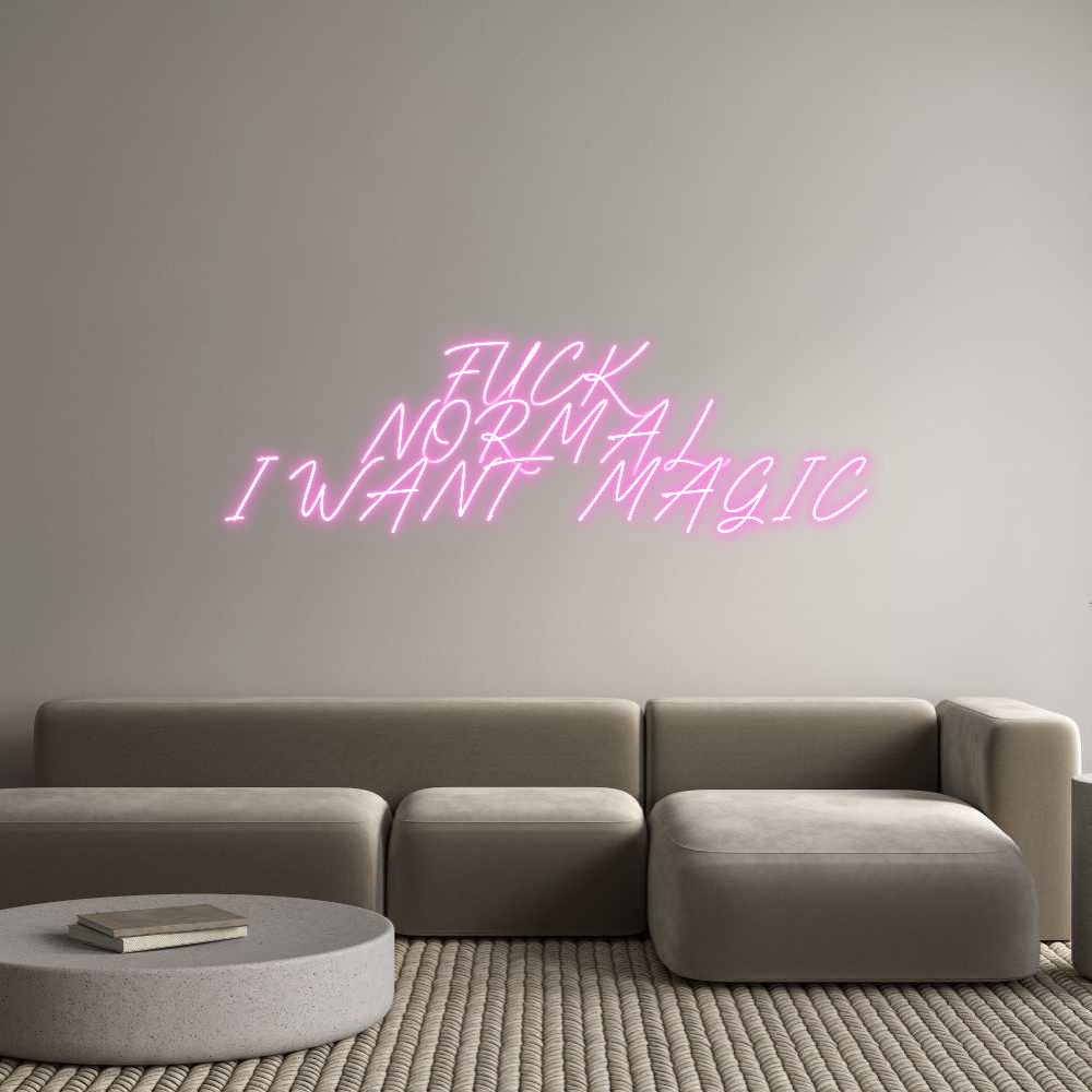 Text: FUCK NORMAL I WANT MAGIC Text Align: centerFont: RocketColour: Baby PinkSize: 80cm wide / 80cm X 35.34cm / 31.5in X 13.91inBackboard: Cut to Letter (free upgrade)Jacket: Coloured JacketMounting: Wall mounting screwsAdd a Heart or Star (Optional): None (Default)Neon Tube Thick...