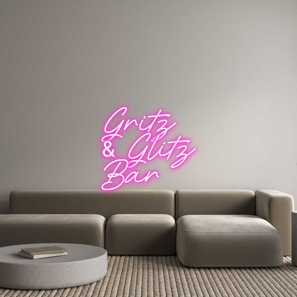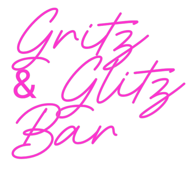 Text: Gritz & Glitz Bar Text Align: LeftFont: RocketColor: PinkSize: 60cm wide / 60cm X 72.31cm / 23.62in X 28.47inMaterial: Outdoor (+30%) Backboard: Cut to Letter (free upgrade)Jacket: Coloured JacketMounting: Wall mounting screwsAdd a Heart or Star (Optional): StarNeon Tube Thick...