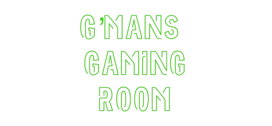 Text: G’mans Gaming Room Text Align: CenterFont: NeonColor: GreenSize: 60cm wide / 60cm X 53.67cm / 23.62in X 21.13inMaterial: IndoorBackboard: Cut to ShapeBackboard Color: BlackJacket: Coloured JacketMounting: Wall mounting screwsAdd a Heart or Star (Optional): None (Default)Neon...