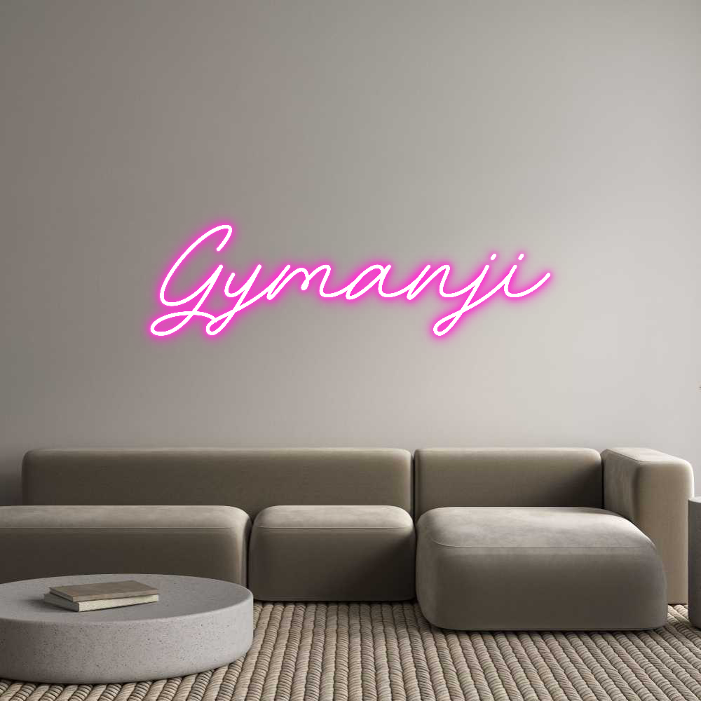 Text: Gymanji Text Align: CenterFont: RocketColor: PinkSize: 80cm wide / 80cm X 23cm / 31.5in X 9.05inMaterial: Outdoor (+30%) Backboard: Cut to ShapeBackboard Color: Clear Acrylic BackboardJacket: White JacketMounting: HangingAdd a Heart or Star (Optional): None (Default)Neon Tube T...