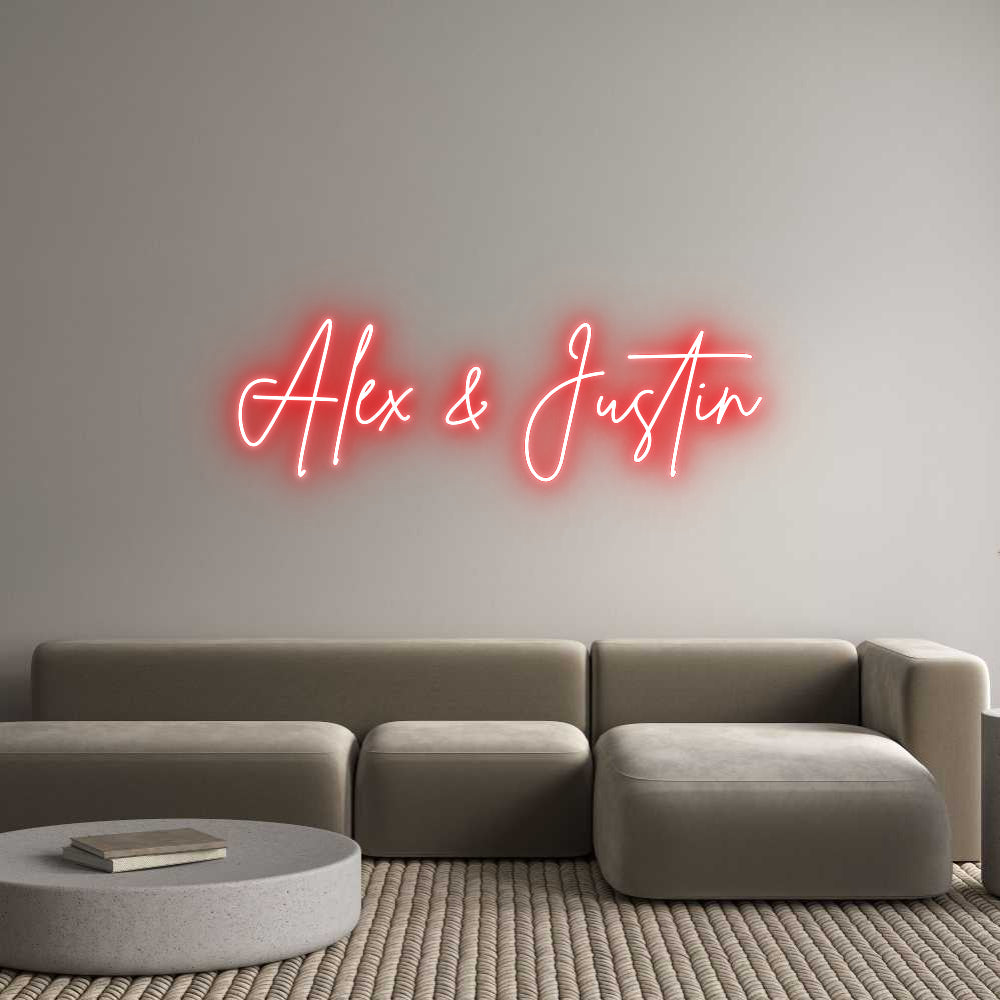 Text: Alex & Justin Text Align: leftFont: BrittanyColour: RedSize: 100cm wide / 100cm X 31.82cm / 39.37in X 12.53inBackboard: Cut to ShapeBackboard Colour: Clear Acrylic BackboardJacket: White JacketMounting: HangingAdd a Heart or Star (Optional): None (Default)Neon Tube Thicknes...