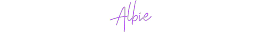 Text: Albie Text Align: leftFont: ShutterColour: PurpleSize: 100cm wide / 100cm X 73.31cm / 39.37in X 28.86inBackboard: Cut to ShapeBackboard Colour: Clear Acrylic BackboardJacket: Coloured JacketMounting: Wall mounting screwsAdd a Heart or Star (Optional): None (Default)Neon Tube Th...
