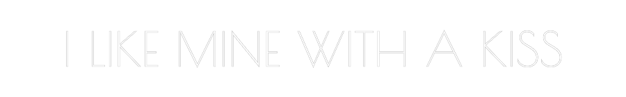 Text: I LIKE MINE WITH A KISS Text Align: LeftFont: PoiretColor: WhiteSize: 140cm wide / 140cm X 11.25cm / 55.12in X 4.43inBackboard: Cut to Letter (free upgrade)Jacket: White JacketMounting: Wall mounting screwsAdd a Heart or Star (Optional): None (Default)Neon Tube Thickness: Class...