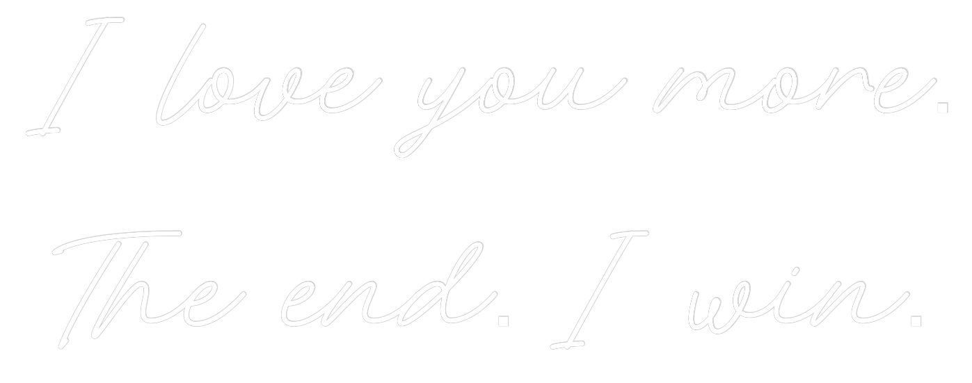 Original LogoText: I love you more. The end. I win. Text Align: CenterFont: RocketColor: Ice BlueSize: 100cm wide / 100cm X 50.94cm / 39.37in X 20.06inMaterial: IndoorBackboard: Cut to ShapeBackboard Color: Clear Acrylic BackboardJacket: White JacketMounting: Wall mounting screwsAdd a He...