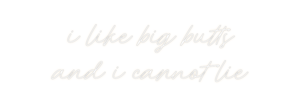 Text: i like big butts and i cannot lie Text Align: center Font: Rocket Colour: Warm WhiteSize: 160cm wide / 160cm X 46.76cm / 62.99in X 18.41inBackboard: Cut to Letter (free upgrade)Jacket: Coloured JacketMounting: Wall mounting screwsNeon Tube Thickness: Classic Tube (...