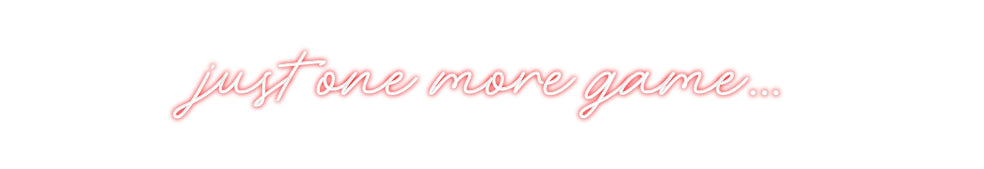 Text: just one more game... Text Align: center Font: RocketColour: Colour Changing Neon sign/ RGB +85% price increase. Lights can be controlled through remoteSize: 350cm wide / 350cm X 38.87cm / 137.8in X 15.3inBackboard: Whole Board (free upgrade)Backboard Colour: Clear Acryli...