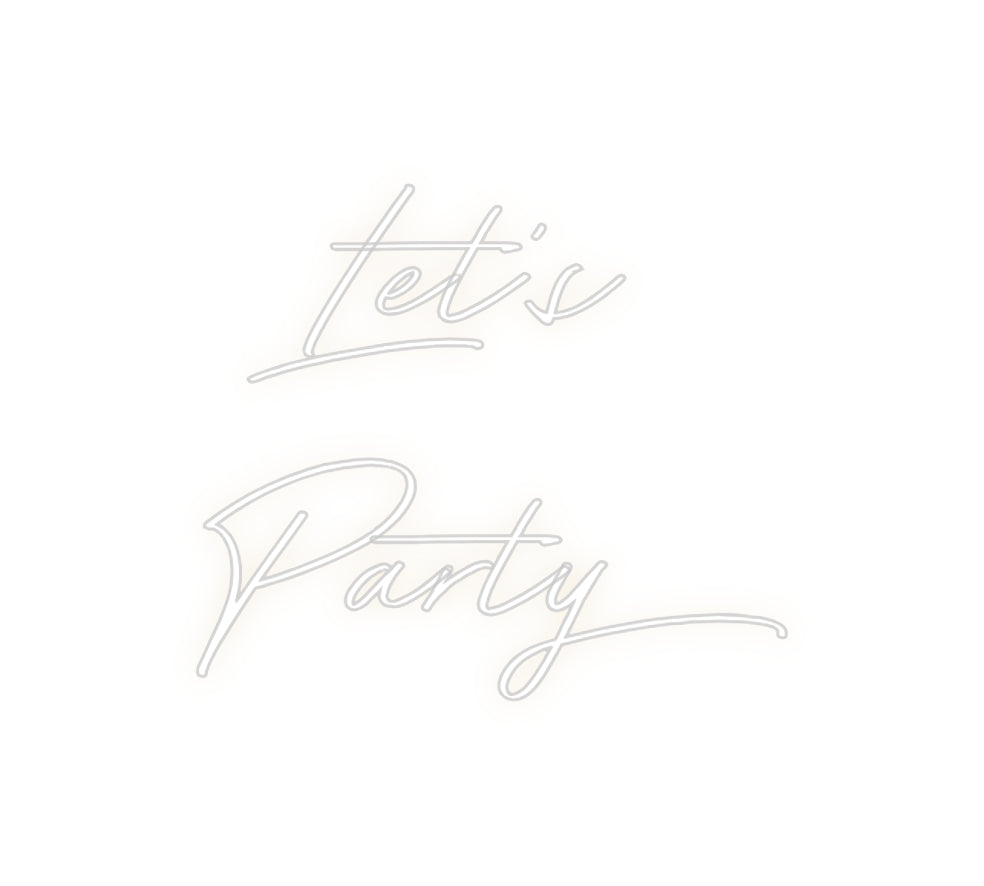 Text: Let's Party Text Align: right Font: BayshoreColour: Warm WhiteSize: 100cm wide / 100cm X 83.98cm / 39.37in X 33.06inBackboard: Cut to ShapeBackboard Colour: Clear Acrylic BackboardJacket: Coloured JacketMounting: HangingAdd a Heart or Star (Optional): None (Default)Neon Tube T...