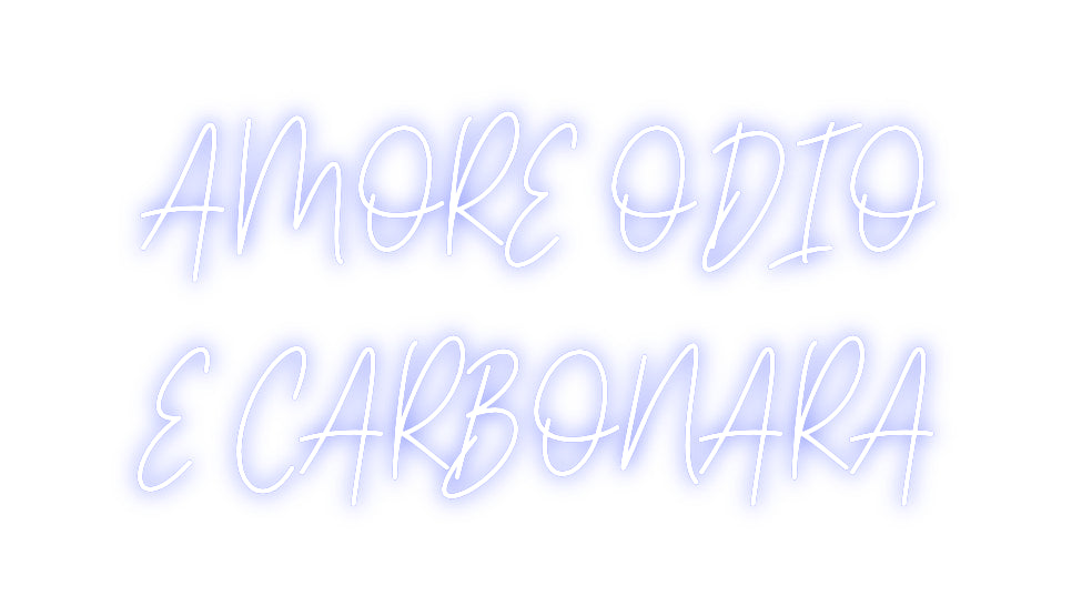 Text: AMORE ODIO E CARBONARA Text Align: center Font: HestericaColour: BlueSize: 100cm wide / 100cm X 50.31cm / 39.37in X 19.81inBackboard: Cut to Letter (free upgrade)Jacket: White JacketMounting: Wall mounting screwsAdd a Heart or Star (Optional): None (Default)Neon Tube T...