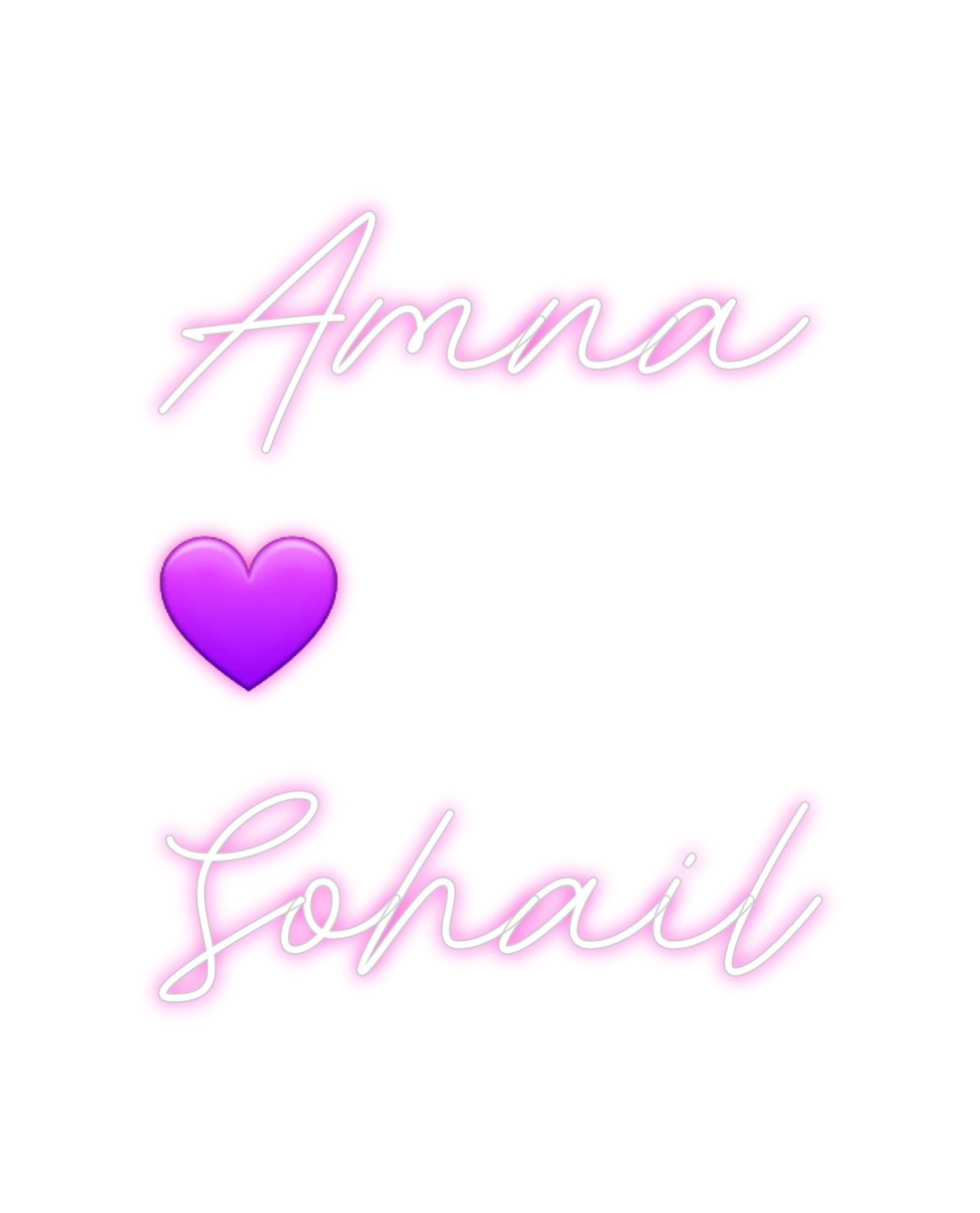 Text: Amna 💜 Sohail Text Align: left Font: RocketColour: PinkSize: 40cm wide / 40cm X 47.1cm / 15.75in X 18.54inBackboard: Cut to ShapeBackboard Colour: Clear Acrylic BackboardJacket: Coloured JacketMounting: Wall mounting screwsNeon Tube Thickness: Classic Tube (6mm)Remote Di...