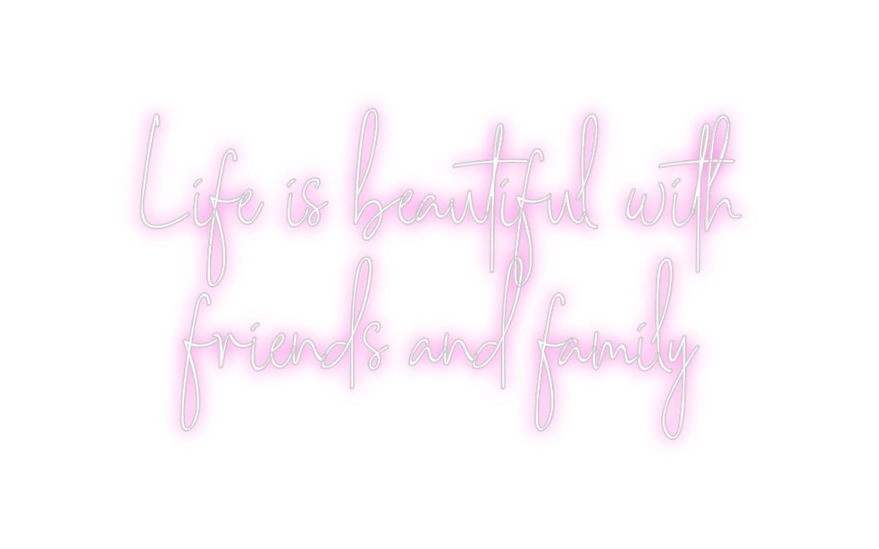 Text: Life is beautiful with friends and family Text Align: center Font: SouthamptonColour: PinkSize: 120cm wide / 120cm X 67.66cm / 47.24in X 26.64inBackboard: Cut to Letter (free upgrade)Jacket: Coloured JacketMounting: HangingAdd a Heart or Star (Optional): HeartNeon Tube Thickne...