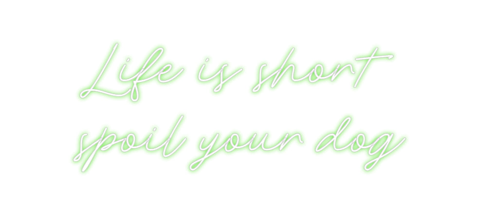 Text: Life is short spoil your dog Text Align: left Font: RocketColour: GreenSize: 140cm wide / 140cm X 54.21cm / 55.12in X 21.34inBackboard: Cut to Letter (free upgrade)Jacket: Coloured JacketMounting: Wall mounting screwsAdd a Heart or Star (Optional): HeartNeon Tube Thickne...