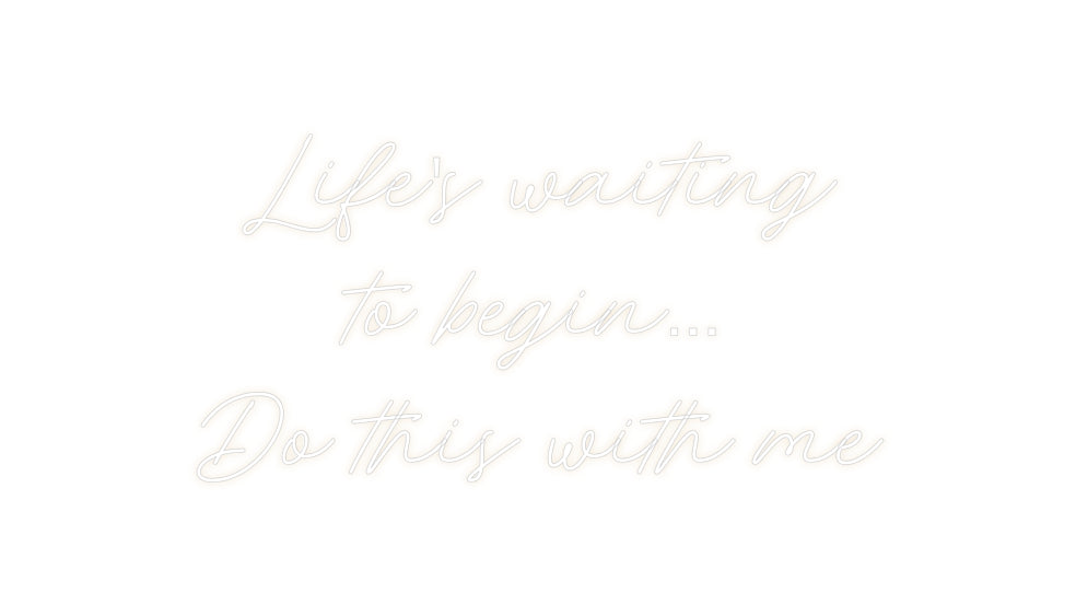 Text: Life's waiting to begin... Do this with me Text Align: center Font: RocketColour: Warm WhiteSize: 100cm wide / 100cm X 51.17cm / 39.37in X 20.14inBackboard: Cut to ShapeBackboard Colour: Clear Acrylic BackboardJacket: White JacketMounting: Wall mounting screwsAdd a He...