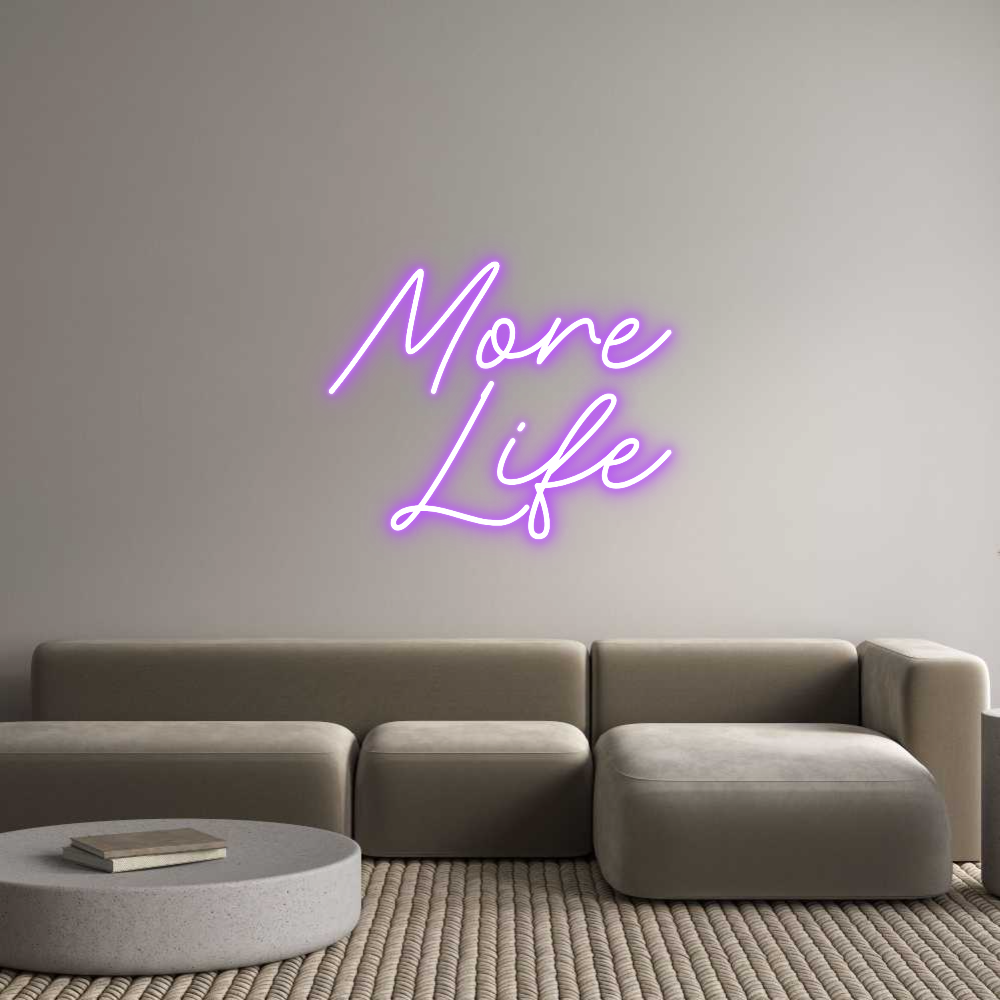 Text: More Life Text Align: RightFont: RocketColor: PurpleSize: 40cm wide / 40cm X 39.83cm / 15.75in X 15.68inBackboard: Cut to ShapeBackboard Color: Clear Acrylic BackboardJacket: Coloured JacketMounting: Fast mount kitAdd a Heart or Star (Optional): None (Default)Neon Tube Thickne...