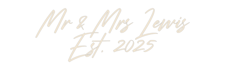 Text: Mr & Mrs Lewis Est. 2025 Text Align: CenterFont: StrudeColor: Warm WhiteSize: 80cm wide / 80cm X 35.97cm / 31.5in X 14.16inBackboard: Cut to Letter (free upgrade)Jacket: Coloured JacketMounting: HangingAdd a Heart or Star (Optional): None (Default)Neon Tube Thickness: Bold...