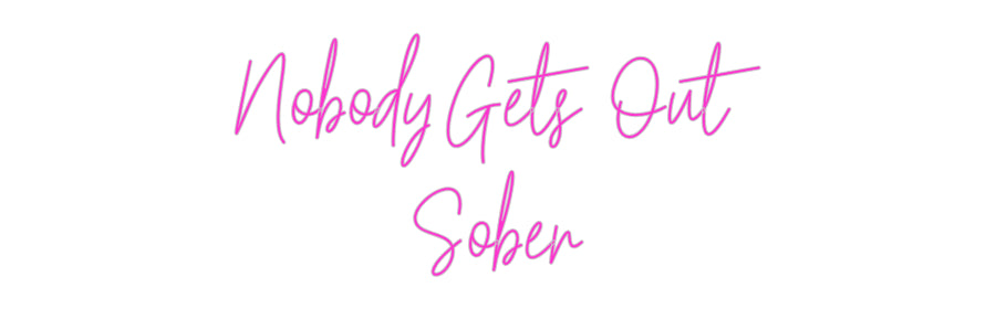 Text: Nobody Gets Out Sober Text Align: centerFont: HestericaColour: PinkSize: 100cm wide / 100cm X 50.88cm / 39.37in X 20.03inBackboard: Cut to Letter (free upgrade)Jacket: Coloured JacketMounting: Wall mounting screwsAdd a Heart or Star (Optional): None (Default)Neon Tube Thicknes...