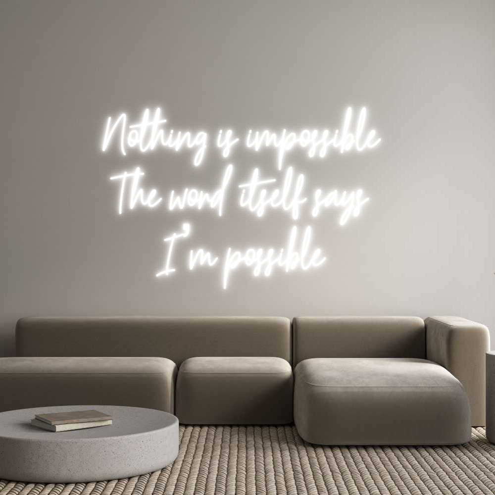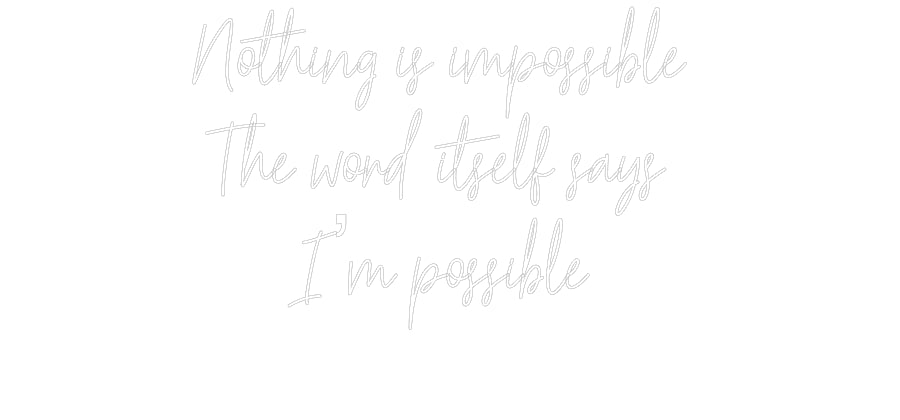 Text: Nothing is impossible The word itself says I’m possible Text Align: centerFont: HestericaColour: WhiteSize: 200cm wide / 200cm X 138.31cm / 78.74in X 54.45inBackboard: Cut to Letter (free upgrade)Jacket: White JacketMounting: Wall mounting screwsAdd a Heart or Star (Option...