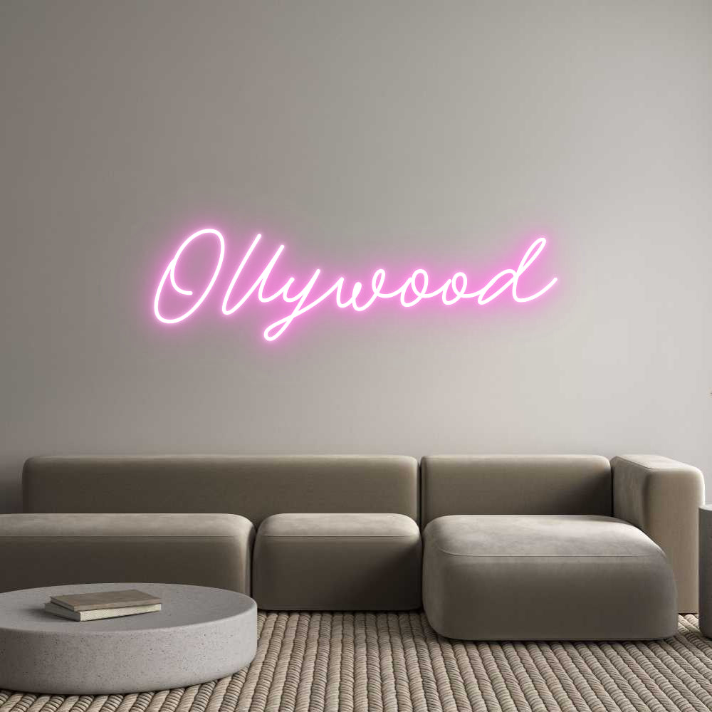 Text: Ollywood Text Align: leftFont: RocketColour: Baby PinkSize: 60cm wide / 60cm X 17.38cm / 23.62in X 6.84inBackboard: Cut to Letter (free upgrade)Jacket: Coloured JacketMounting: Wall mounting screwsAdd a Heart or Star (Optional): None (Default)Neon Tube Thickness: Bold Tube (8mm...