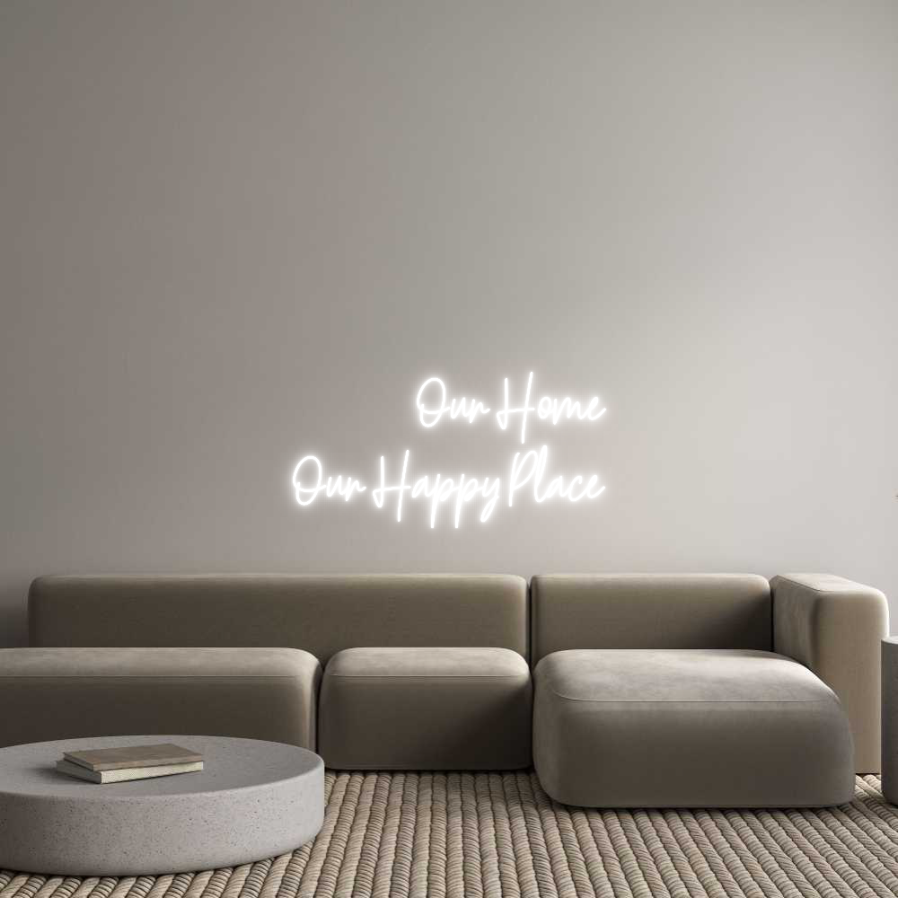 Text: Our Home Our Happy Place Text Align: RightFont: HestericaColor: WhiteSize: 100cm wide / 100cm X 50.82cm / 39.37in X 20.01inMaterial: IndoorBackboard: Cut to Letter (free upgrade)Jacket: White JacketMounting: Wall mounting screwsAdd a Heart or Star (Optional): None (Default)Neon Tub...