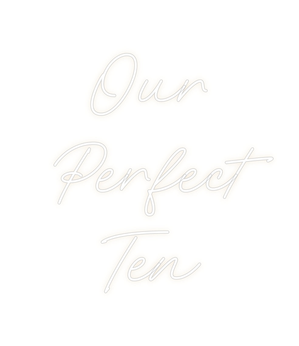 Text: Our Perfect Ten Text Align: center Font: RocketColour: Warm WhiteSize: 60cm wide / 60cm X 65.78cm / 23.62in X 25.9inBackboard: Cut to Letter (free upgrade)Jacket: White JacketMounting: Wall mounting screwsAdd a Heart or Star (Optional): None (Default)Neon Tube Thickness...