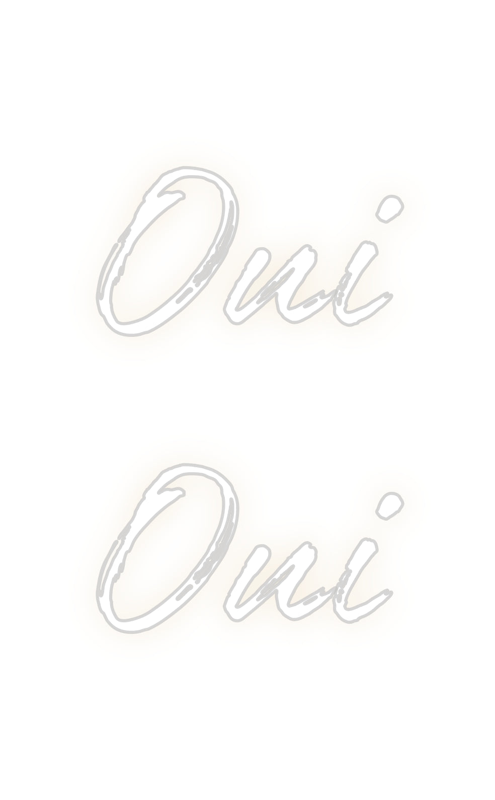 Text: Oui Oui Text Align: left Font: WorldColour: Warm WhiteSize: 40cm wide / 40cm X 62.19cm / 15.75in X 24.49inBackboard: Cut to Letter (free upgrade)Jacket: Coloured JacketMounting: Wall mounting screwsAdd a Heart or Star (Optional): None (Default)Neon Tube Thickness: Classi...