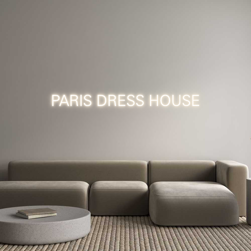 Text: PARIS DRESS HOUSE Text Align: centerFont: ZurichColour: Warm WhiteSize: 100cm wide / 100cm X 8.08cm / 39.37in X 3.18inBackboard: Cut to ShapeBackboard Colour: Clear Acrylic BackboardJacket: Coloured JacketMounting: Wall mounting screwsAdd a Heart or Star (Optional): None (Defau...