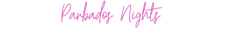 Text: Parbados Nights Text Align: leftFont: HestericaColour: PinkSize: 100cm wide / 100cm X 28.13cm / 39.37in X 11.07inBackboard: Cut to ShapeBackboard Colour: Clear Acrylic BackboardJacket: Coloured JacketMounting: Wall mounting screwsAdd a Heart or Star (Optional): None (Default)N...