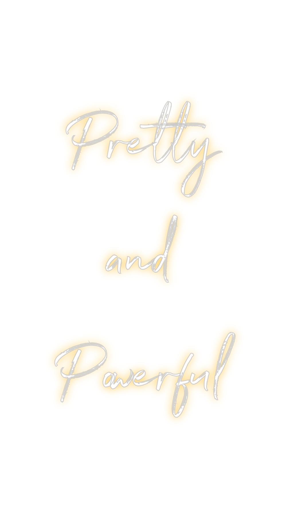 Text: Pretty and Powerful Text Align: center Font: NorthwellColour: Light OrangeSize: 60cm wide / 60cm X 106.55cm / 23.62in X 41.95inBackboard: Cut to ShapeJacket: Coloured JacketMounting: Wall mounting screwsNeon Tube Thickness: Classic Tube (6mm)Remote Dimmer: NoPower Mode: ...