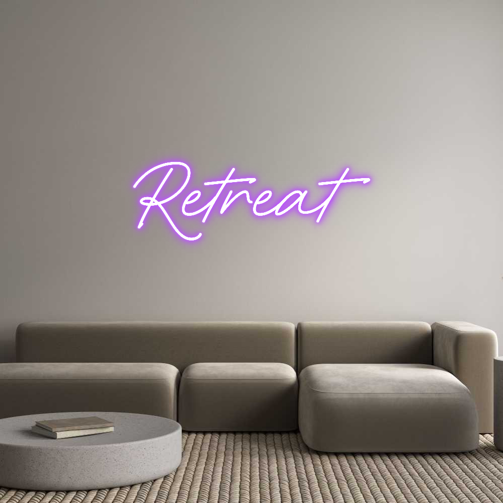 Text: Retreat Text Align: leftFont: RocketColour: PurpleSize: 60cm wide / 60cm X 20.16cm / 23.62in X 7.94inBackboard: Cut to Letter (free upgrade)Jacket: White JacketMounting: Wall mounting screwsAdd a Heart or Star (Optional): None (Default)Neon Tube Thickness: Bold Tube (8mm) (free...