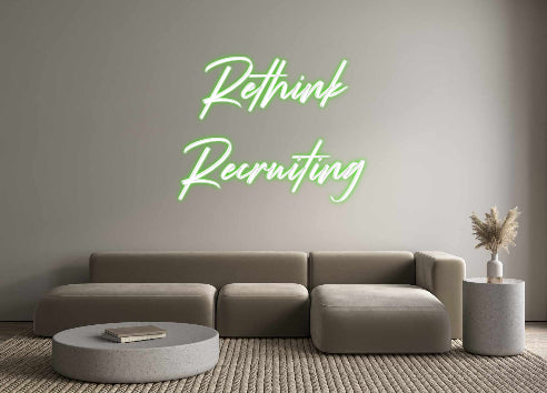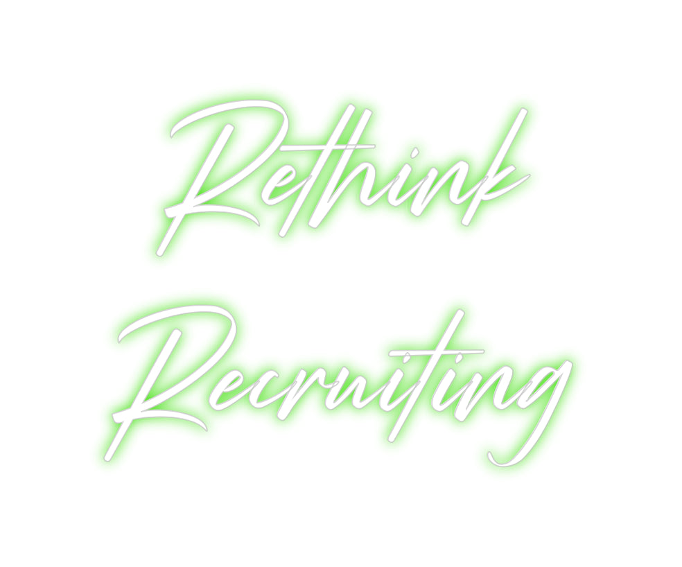 Text: Rethink Recruiting Text Align: center Font: StrudeColour: GreenSize: 160cm wide / 160cm X 123.37cm / 62.99in X 48.57inBackboard: Cut to Letter (free upgrade)Jacket: Coloured JacketMounting: Wall mounting screwsAdd a Heart or Star (Optional): None (Default)Neon Tube Thick...
