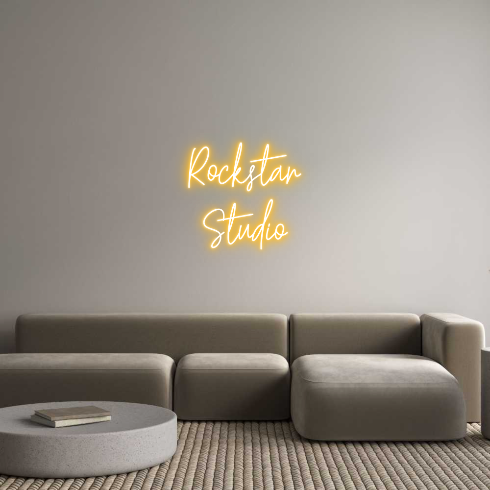 Text: Rockstar Studio Text Align: centerFont: HestericaColour: Light OrangeSize: 120cm wide / 120cm X 123.87cm / 47.24in X 48.77inBackboard: Cut to Letter (free upgrade)Jacket: Coloured JacketMounting: HangingAdd a Heart or Star (Optional): StarNeon Tube Thickness: Bold Tube (8mm) (...