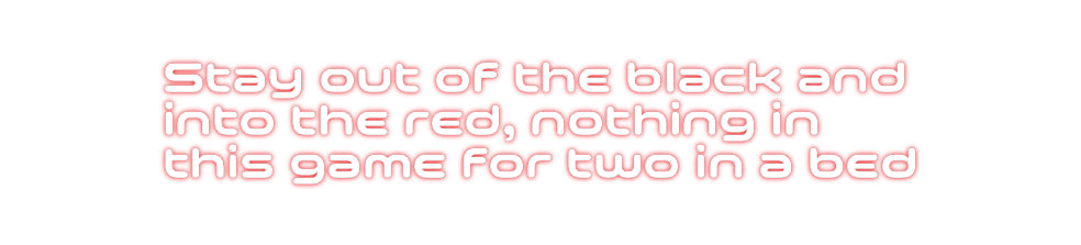 Text: Stay out of the black and into the red, nothing in this game for two in a bed Text Align: left Font: SpaceColour: RedSize: 120cm wide / 120cm X 19.89cm / 47.24in X 7.83inBackboard: Whole Board (free upgrade)Backboard Colour: Clear Acrylic BackboardJacket: White JacketMo...