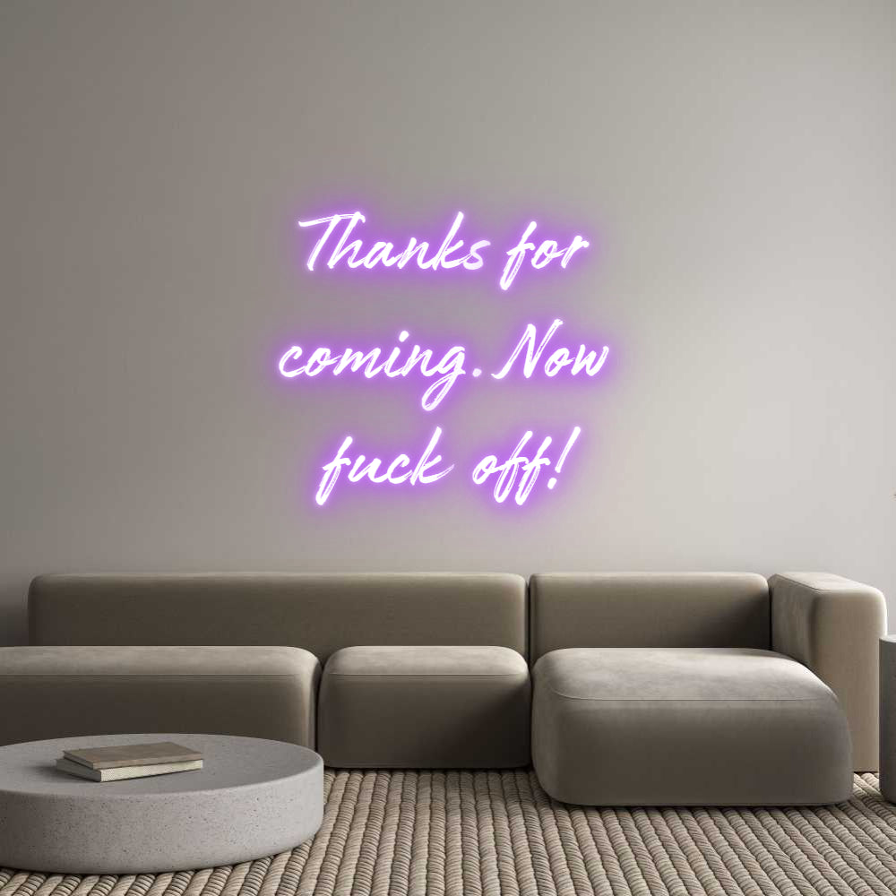 Text: Thanks for coming. Now fuck off! Text Align: centerFont: WorldColour: PurpleSize: 60cm wide / 60cm X 52.48cm / 23.62in X 20.66inBackboard: Cut to Letter (free upgrade)Jacket: White JacketMounting: Wall mounting screwsAdd a Heart or Star (Optional): None (Default)Neon Tube Thi...