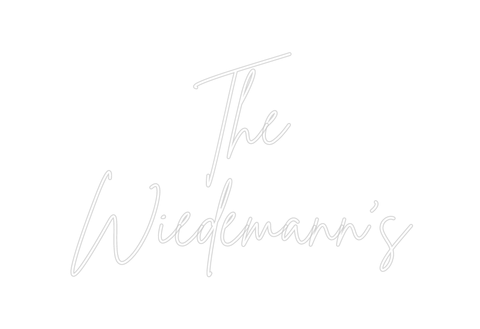 Text: The Wiedemann's Text Align: center Font: BrittanyColour: WhiteSize: 100cm wide / 100cm X 62.49cm / 39.37in X 24.6inBackboard: Cut to Letter (free upgrade)Jacket: White JacketMounting: Wall mounting screwsAdd a Heart or Star (Optional): None (Default)Neon Tube Thickness: ...