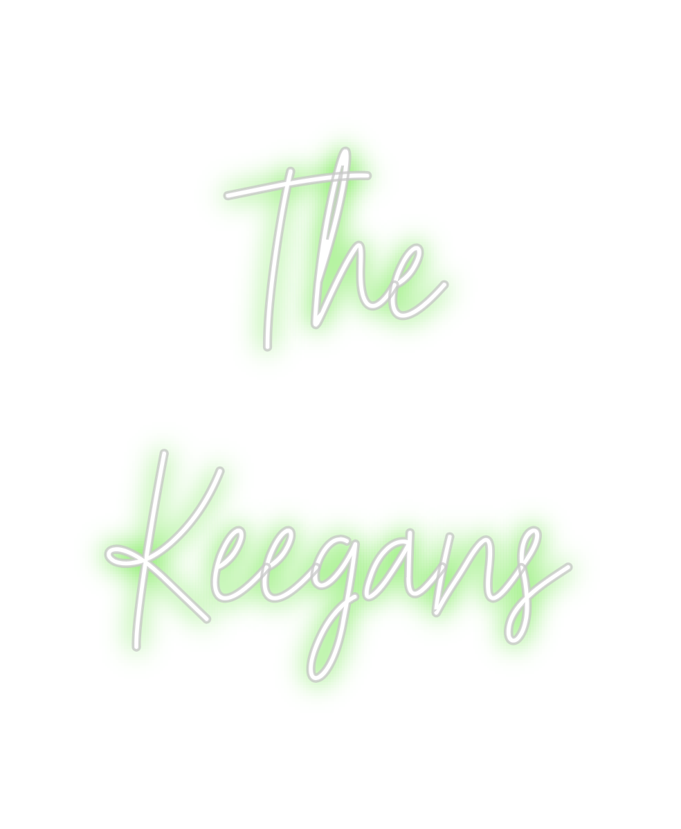 Text: The Keegans Text Align: center Font: Hesterica Colour: GreenSize: 60cm wide / 60cm X 69.39cm / 23.62in X 27.32inBackboard: Cut to Letter (free upgrade)Jacket: White JacketMounting: HangingNeon Tube Thickness: Classic Tube (6mm)Remote Dimmer: YesPower Mode: Battery...