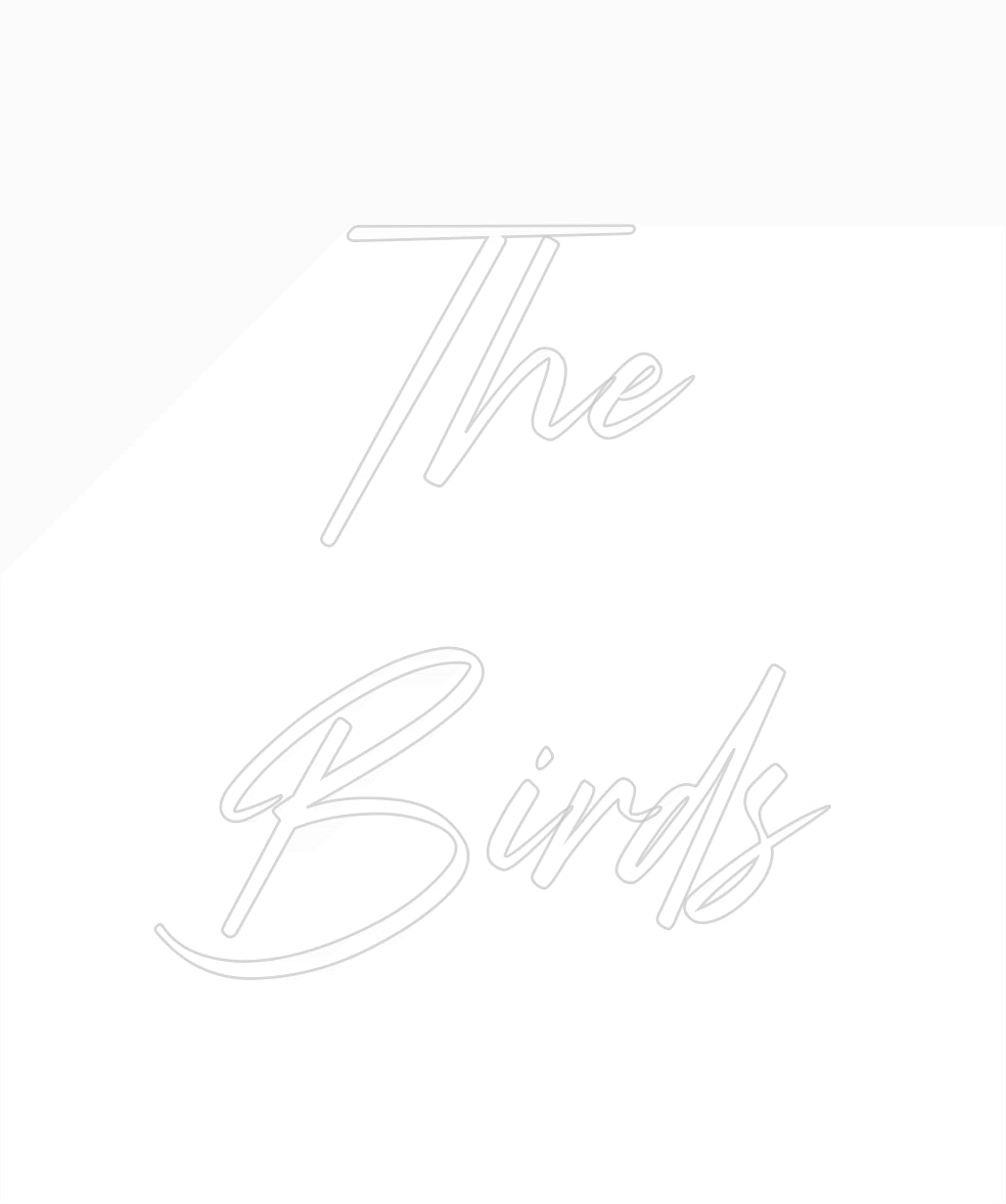 Text: The Birds Text Align: center Font: StrudeColour: WhiteSize: 60cm wide / 60cm X 68.18cm / 23.62in X 26.84inBackboard: Cut to Letter (free upgrade)Jacket: White JacketMounting: Wall mounting screwsAdd a Heart or Star (Optional): None (Default)Neon Tube Thickness: Bold Tub...
