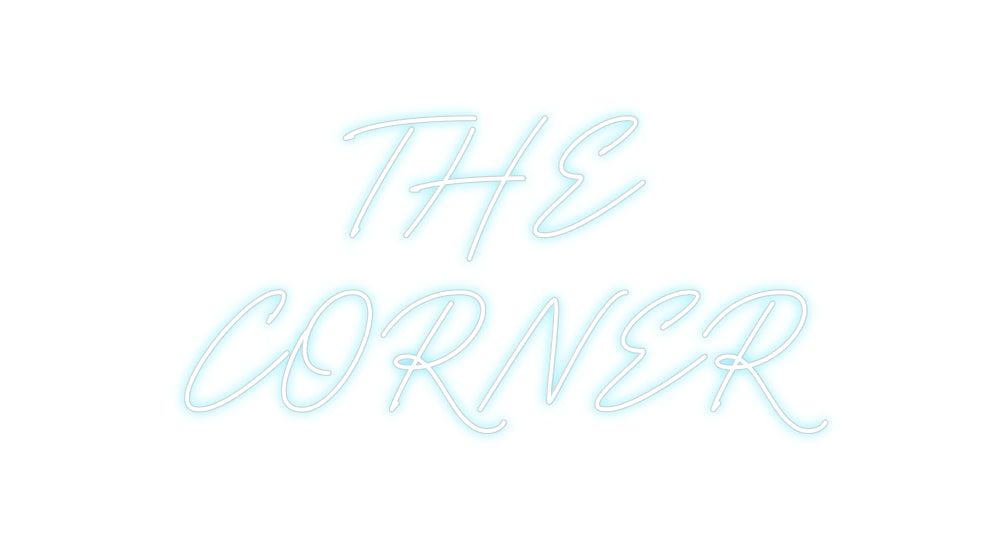 Text: THE CORNER Text Align: center Font: RocketColour: Ice BlueSize: 80cm wide / 80cm X 39.82cm / 31.5in X 15.68inBackboard: Cut to ShapeBackboard Colour: Clear Acrylic BackboardJacket: White JacketMounting: Wall mounting screwsAdd a Heart or Star (Optional): None (Default)N...