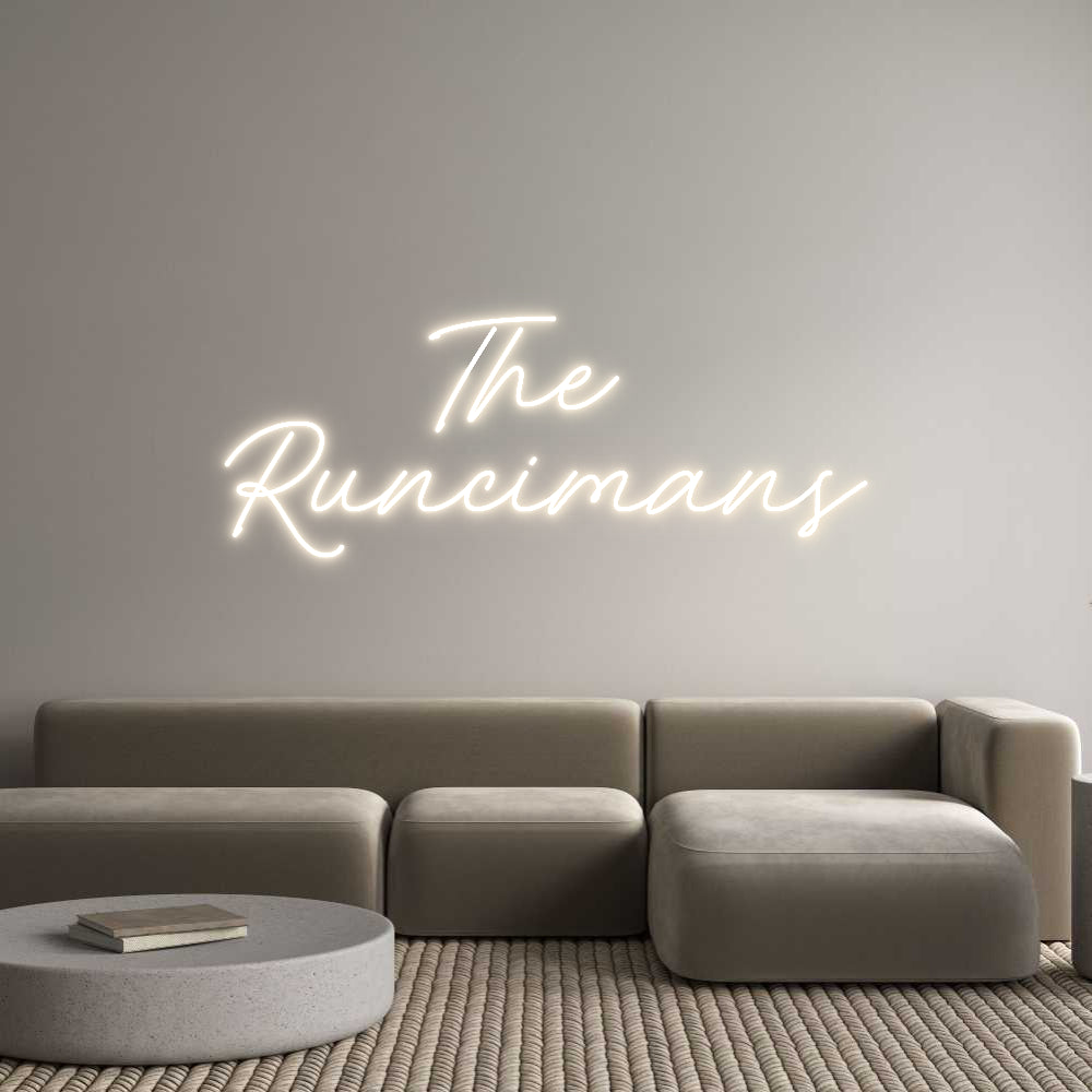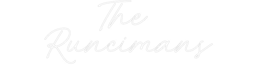 Text: The Runcimans Text Align: centerFont: RocketColour: Warm WhiteSize: 80cm wide / 80cm X 37.65cm / 31.5in X 14.82inBackboard: Cut to ShapeBackboard Colour: Clear Acrylic BackboardJacket: White JacketMounting: HangingAdd a Heart or Star (Optional): None (Default)Neon Tube Thickn...