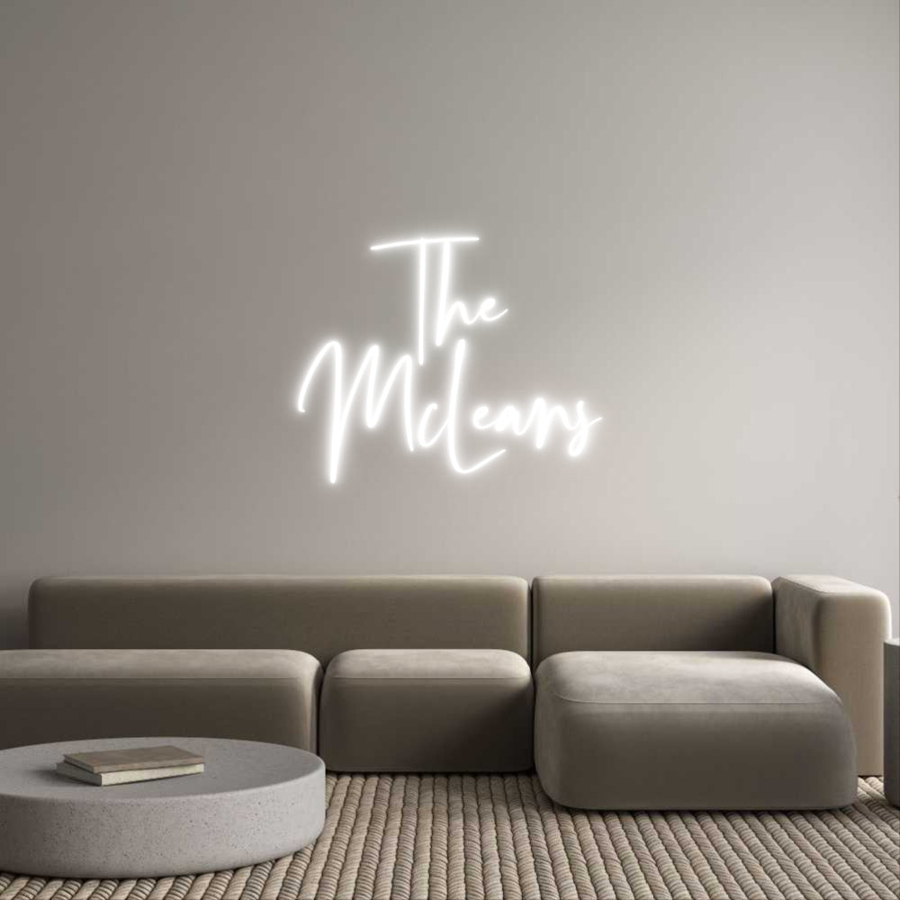 Text: The McLeans Text Align: centerFont: OttawaColour: WhiteSize: 60cm wide / 60cm X 67.36cm / 23.62in X 26.52inBackboard: Cut to Letter (free upgrade)Jacket: Coloured JacketMounting: HangingAdd a Heart or Star (Optional): None (Default)Neon Tube Thickness: Bold Tube (8mm) (free u...