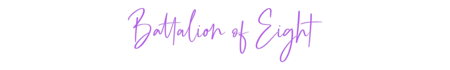 Text: Battalion of Eight Text Align: leftFont: OttawaColour: PurpleSize: 100cm wide / 100cm X 27.94cm / 39.37in X 11inBackboard: Cut to Letter (free upgrade)Jacket: Coloured JacketMounting: Wall mounting screwsAdd a Heart or Star (Optional): None (Default)Neon Tube Thickness: Bold Tu...