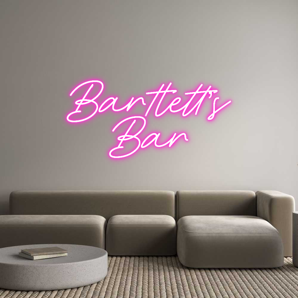 Text: Bartlett’s Bar Text Align: centerFont: RocketColour: PinkSize: 60cm wide / 60cm X 36.23cm / 23.62in X 14.27inBackboard: Cut to Letter (free upgrade)Jacket: Coloured JacketMounting: HangingAdd a Heart or Star (Optional): None (Default)Neon Tube Thickness: Classic Tube (6mm)Remo...