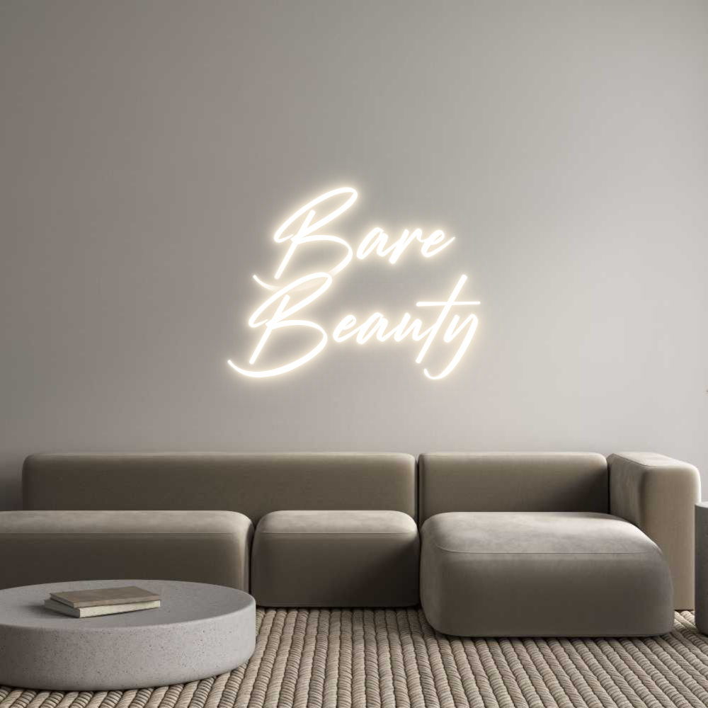 Text: Bare Beauty Text Align: CenterFont: StrudeColor: Warm WhiteSize: 60cm wide / 60cm X 57.46cm / 23.62in X 22.62inBackboard: Cut to Letter (free upgrade)Jacket: Coloured JacketMounting: Fast mount kitAdd a Heart or Star (Optional): None (Default)Neon Tube Thickness: Classic Tube ...