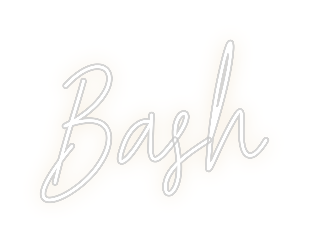 Text: Bash Text Align: left Font: HestericaColour: Warm WhiteSize: 80cm wide / 80cm X 58.05cm / 31.5in X 22.85inBackboard: Cut to ShapeBackboard Colour: Clear Acrylic BackboardJacket: White JacketMounting: Wall mounting screwsAdd a Heart or Star (Optional): None (Default)Neon T...