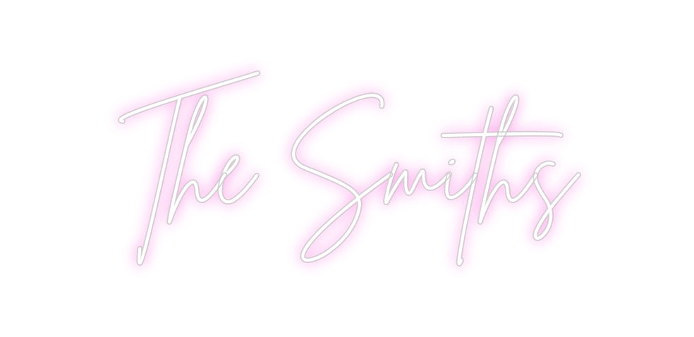 Text: The Smiths Text Align: center Font: HestericaColour: Warm WhiteSize: 80cm wide / 80cm X 24.37cm / 31.5in X 9.6inBackboard: Cut to Letter (free upgrade)Jacket: Coloured JacketMounting: HangingAdd a Heart or Star (Optional): None (Default)Neon Tube Thickness: Bold Tube (8mm...