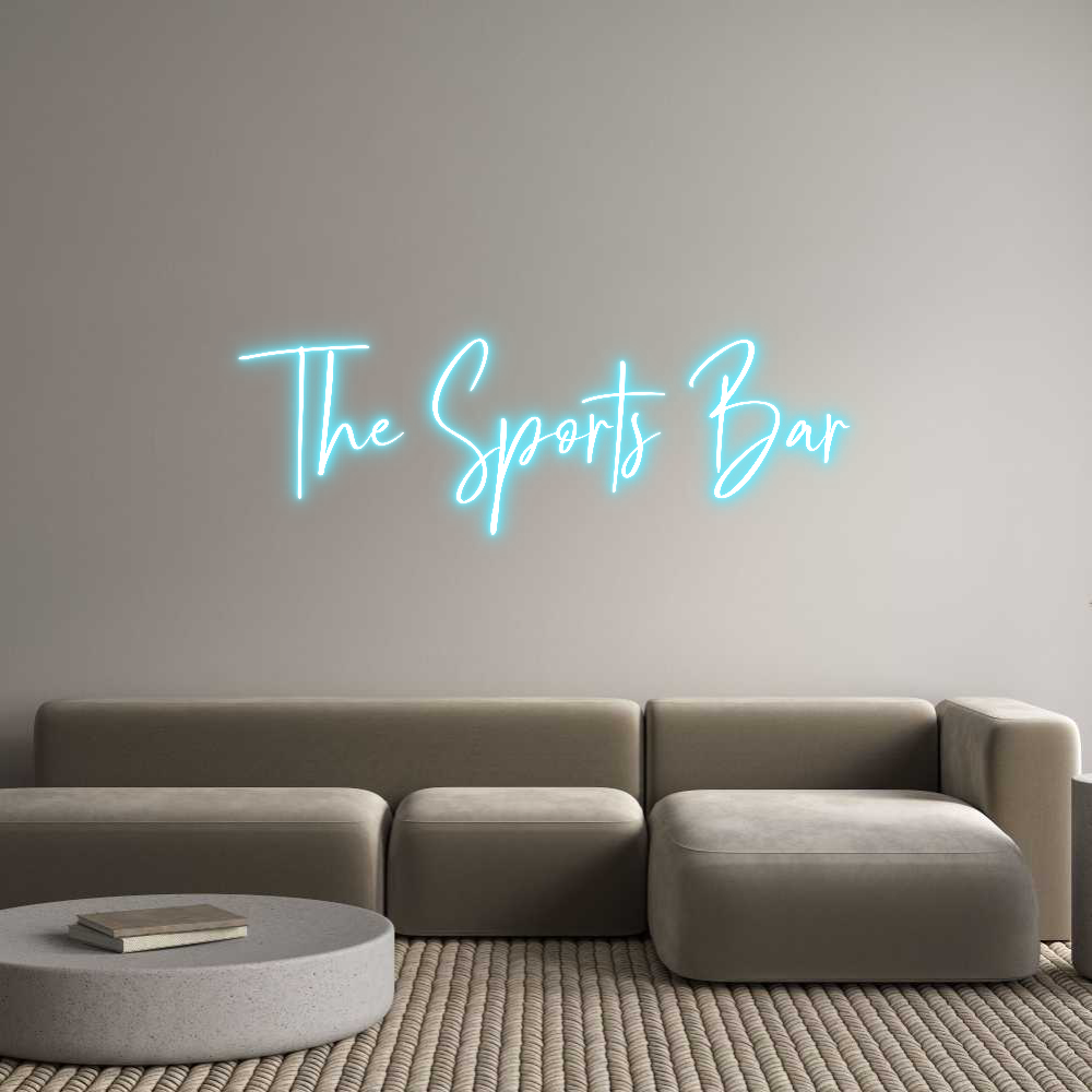 Text: The Sports Bar Text Align: leftFont: OttawaColour: Ice BlueSize: 80cm wide / 80cm X 26.33cm / 31.5in X 10.37inBackboard: Cut to Letter (free upgrade)Jacket: White JacketMounting: Fast mount kitAdd a Heart or Star (Optional): None (Default)Neon Tube Thickness: Bold Tube (8mm) (f...