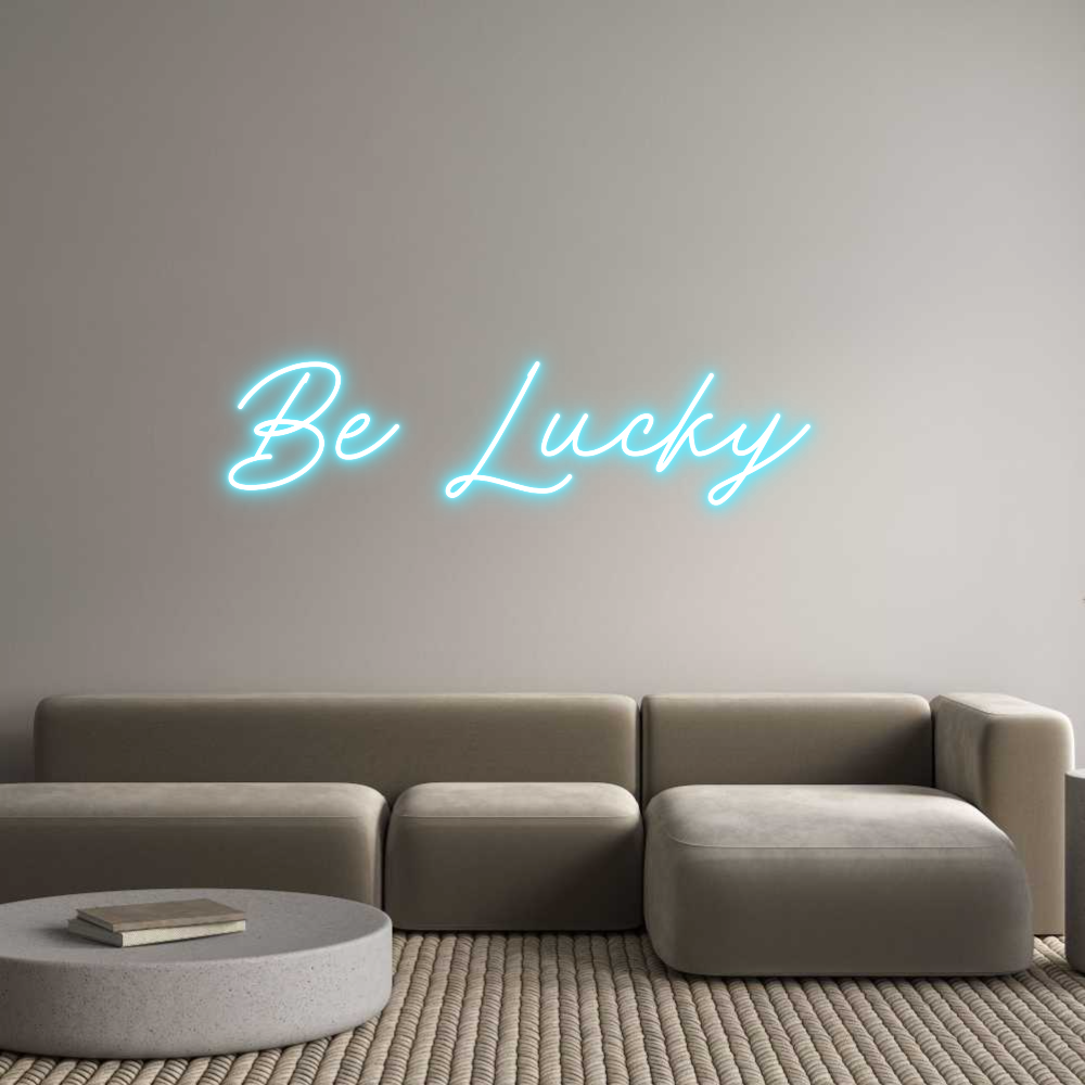 Text: Be Lucky Text Align: LeftFont: RocketColor: Ice BlueSize: 60cm wide / 60cm X 15.13cm / 23.62in X 5.96inBackboard: Cut to ShapeBackboard Color: Clear Acrylic BackboardJacket: Coloured JacketMounting: HangingAdd a Heart or Star (Optional): None (Default)Neon Tube Thickness: Clas...