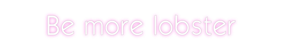 Text: Be more lobster Text Align: left Font: KabelColour: Baby PinkSize: 80cm wide / 80cm X 9.51cm / 31.5in X 3.74inBackboard: Cut to Letter (free upgrade)Jacket: Coloured JacketMounting: Wall mounting screwsAdd a Heart or Star (Optional): None (Default)Neon Tube Thickness: Bol...