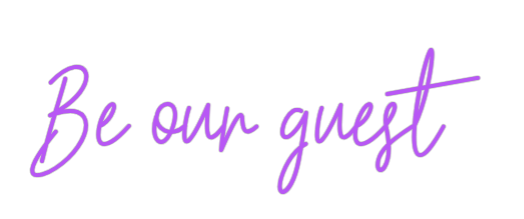 Text: Be Our Guest Text Align: LeftFont: HestericaColor: BlueSize: 120cm wide / 120cm X 34.21cm / 47.24in X 13.47inBackboard: Cut to Letter (free upgrade)Jacket: White JacketMounting: Fast mount kitAdd a Heart or Star (Optional): None (Default)Neon Tube Thickness: Bold Tube (8mm) (fr...